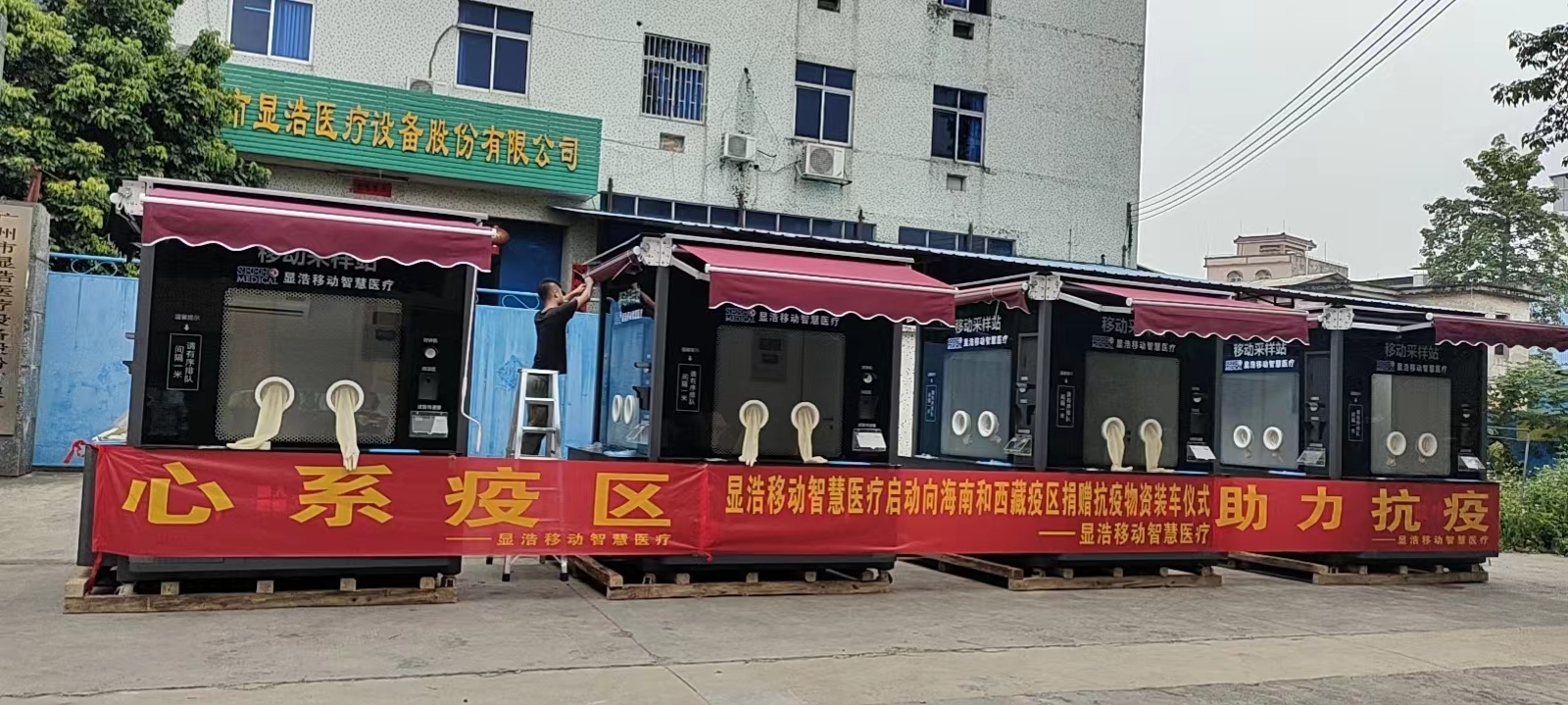 湖北顯浩醫(yī)療裝備科技有限公司營(yíng)運(yùn)總監(jiān)蔣存金介紹,此次捐贈(zèng)的核酸檢測(cè)亭是公司員工加班加點(diǎn)趕制,配備有自動(dòng)對(duì)講、測(cè)溫等裝備,安裝新風(fēng)空調(diào)系統(tǒng),可以保證檢測(cè)亭內(nèi)工作環(huán)境的零污染。在完成核酸檢測(cè)工作之后,它還可以轉(zhuǎn)化為執(zhí)法亭、早餐售賣點(diǎn)、休息室等形態(tài),繼續(xù)發(fā)揮功用