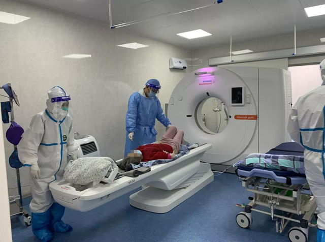 醫院發熱門診就診,長方體箱子中進行CT胸部檢查。這個就是方艙CT,在疫情防控期間發揮了重要作用。嚴格的場地布局,設備組裝,質量控制檢測,放射防護檢測,就可以馬上投入使用。方艙CT獨立在醫院大樓外面,主要是配套發熱門診使用。如果有疑似病人就通過專用通道進入方艙CT檢查。雙向單通道沒有與外界聯系。CT檢查準時高效,確保了檢查的強隔離沒有任何接觸,可以保障檢測人員跟病人沒有感染的風險。采用閉環管理,檢查人員的口罩、隔離衣服、手套都是全方位的消毒。CT掃描檢查好后的圖像質量。上傳到數據系統然后查看圖像。各個科室的醫生也可以通過網絡看片。方便高效快捷。方艙CT的啟用為患者提供精準的影像診斷,為醫生提供快捷的影像報告、準確的參考依據,疫情防控提供有力的數據支持。